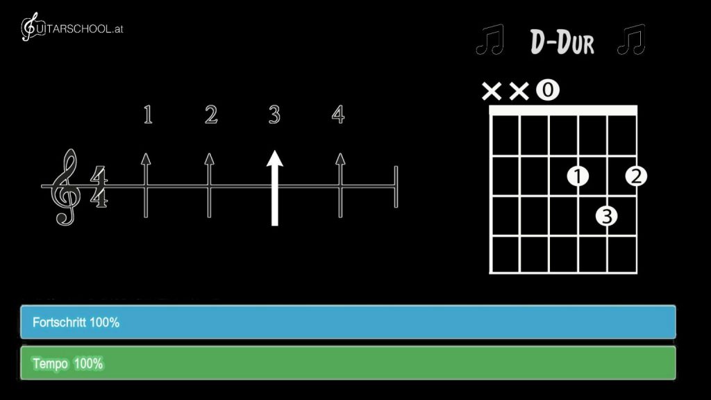 Mit diesem einzigartigen Übe-Programm lernst du die Griffe zu wechseln. Zuerst langsam, dann immer schneller! Dabei wirst du von einem coolen Drumbeat begleitet!