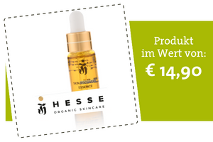 Hesse Premium Naturkosmetik auf höchstem Niveau (Demeter) – “Soulfood for your skin”. Bei jeder Bestellung mit unserm Gutscheincode gibt’s kostenlos 1 Regenerations Öl-Essenz im Wert von € 14,90 Euro gratis dazu.