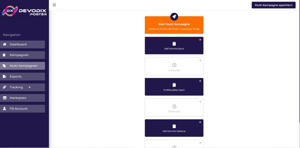 Im Multikampagnenmanger erstellst du einen Autostart Funnel deiner Kampagnen. So kannst du an nur einem Tag, mehrere Produkte und Nischen bewerben, ohne nochmals was einzustellen.