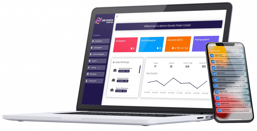 Egal ob du dein eigenes Business bewirbst oder mehrere Seiten betreust – mit devodix Poster hast du alles im Griff und kannst dich auf das konzentrieren, was wirklich zählt: dein Content und deine Community.