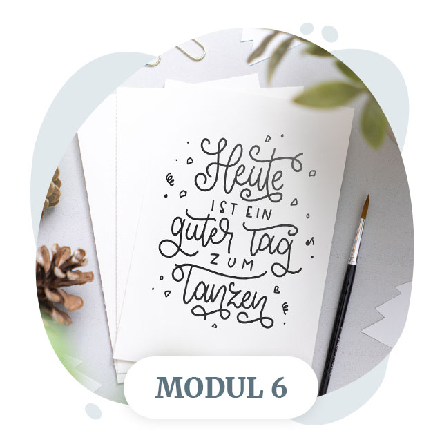 In diesem Modul gestalten wir Letterings mit mehreren Wörtern und Schriftarten. Außerdem nutzen wir Layout Blöcke zur effektiven Vorbereitung.