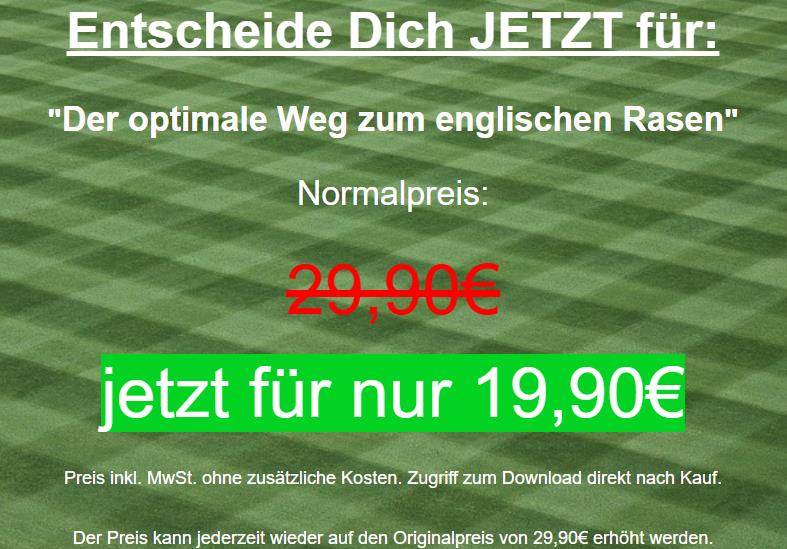 - Du erhältst das 175 Seiten starke Ratgeber E-Book "Der optimale Weg zum englischen Rasen"