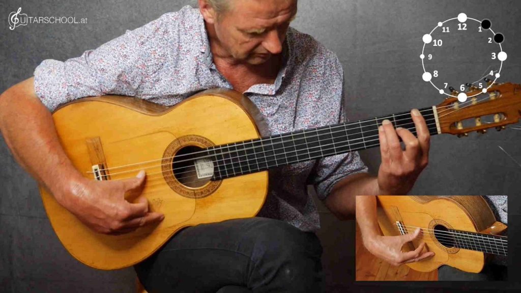 Hier wird dir alles Schritt für Schritt erklärt. Von der Haltung der Gitarre bis zu den raffinierten Tricks der Flamenco Gitarristen! Wenn du die Gitarre zum allerersten Mal in der Hand hast, starte aber zuerst mit dem Einführungskurs.