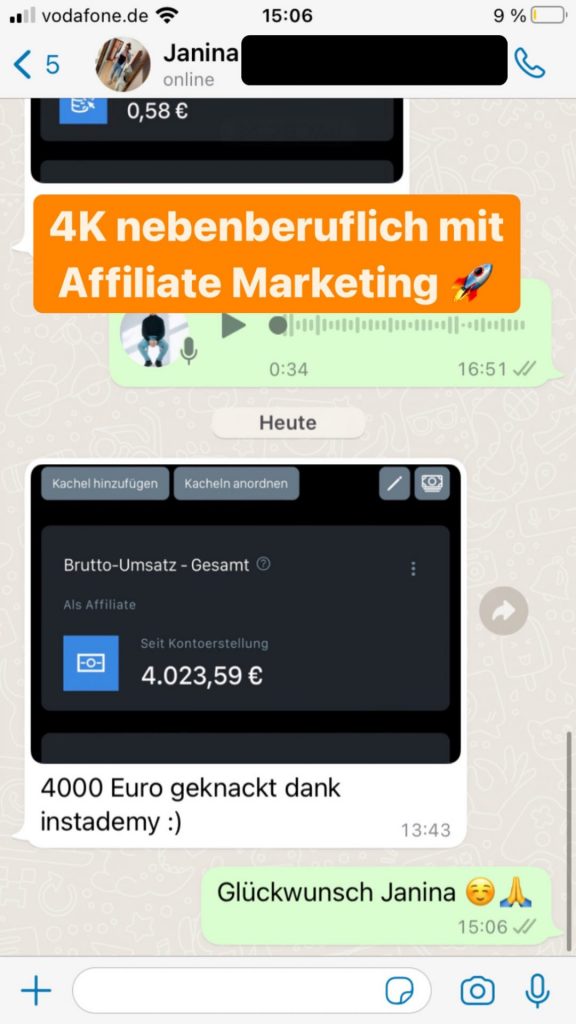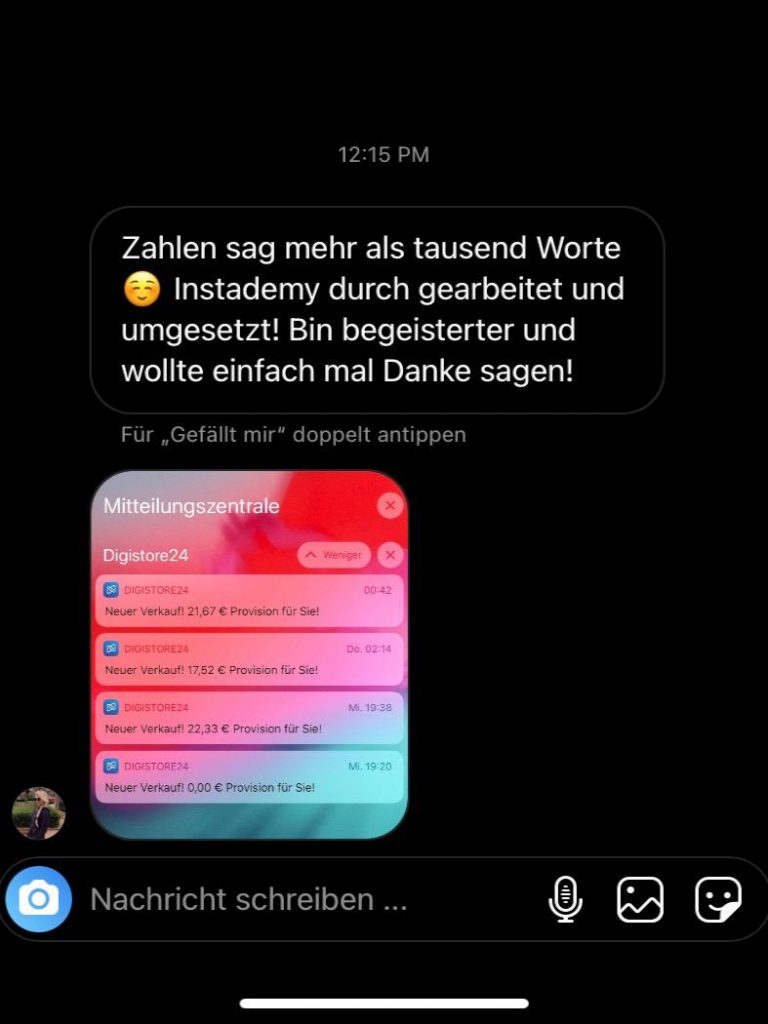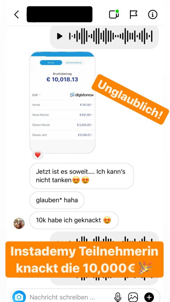 In der Instademy lernst du, wie du von Null an starten kannst. Du kannst durchaus auch schon mit 18 Followern Verkäufe und Einnahmen erzielen.