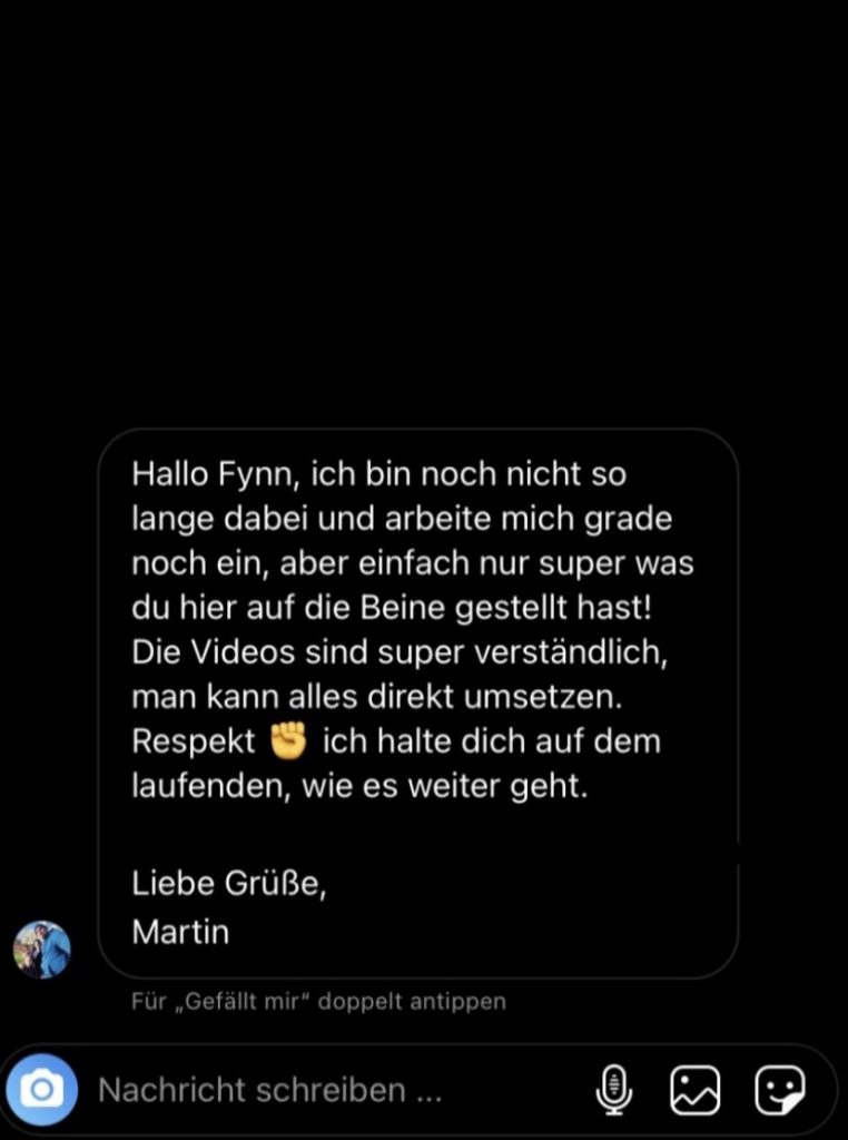 Fynn Diroll ist ein junger Internetunternehmer, der es sich zur Aufgabe gemacht hat, Menschen zu zeigen, mit Social Media ein profitables Online Business aufzubauen! Bereits über 8000 Menschen konnte er so dazu verhelfen, ein freies und selbstbestimmtes Leben zu führen.