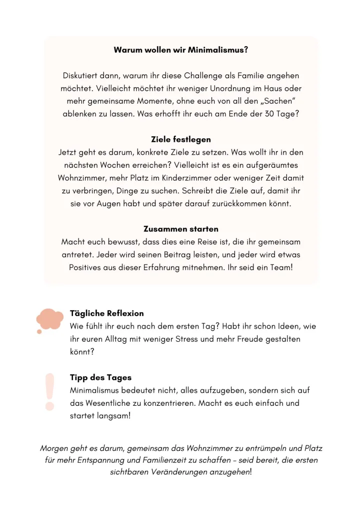 In 30 Tagen zu einem einfacheren, harmonischeren Familienleben – eine praktische Schritt-für-Schritt-Anleitung, um Minimalismus im Alltag umzusetzen.