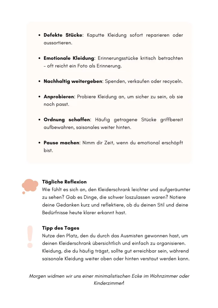 Von der Kleiderschrank-Entrümpelung bis hin zu minimalistischen Routinen, die dir dauerhaft mehr Zeit schenken.