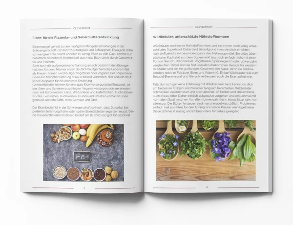 Du weißt vielleicht schon, was Du während Deiner Schwangerschaft für eine gesunde Ernährung benötigst, was ihr benötigt. Die Entwicklung Deines Babys liegt Dir sehr am Herzen. Du möchtest alles tun, was es für dieses Wunder an Nährstoffen braucht, damit es mit bestmöglichen Voraussetzungen auf die Welt kommt. Im CleverMom eBook zeige ich Dir die besten Rezepte aus unserem Ernährungsplan für die Schwangerschaft. Alle Rezepte sind wahre Nährstoff-Booster speziell für die Schwangerschaft.
