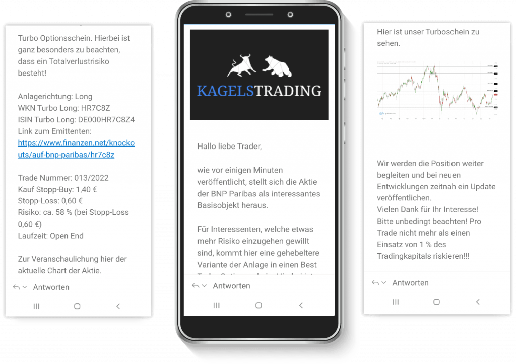 Die Handelssignale für Optionen und Hebelprodukte erhältst Du per Email. Nach Bestellung bekommst Du von uns alle nötigen Erklärungen und Links.