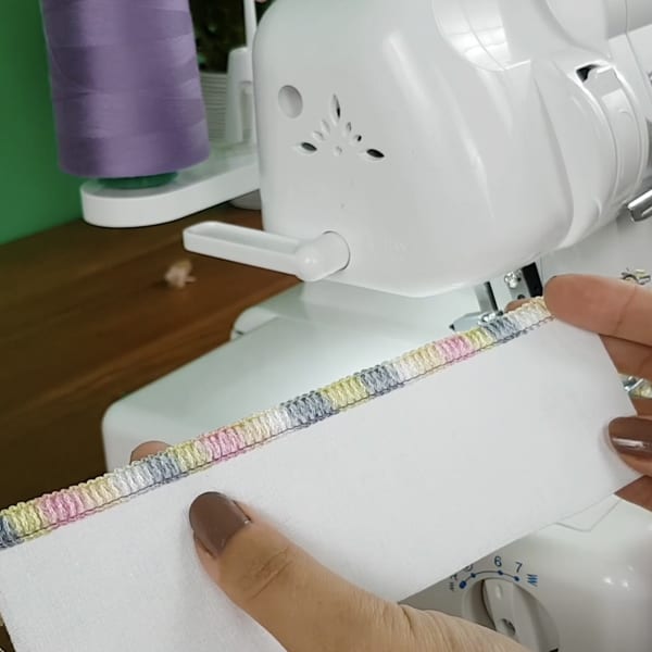 - Du nähst die 8 wichtigsten Overlockstiche und lernst wunderschöne Ziernähte mit Deko-Garn kennen. Bezaubernde Effekte, wie das Kräuseln oder das Raffen sind auch mit dabei.