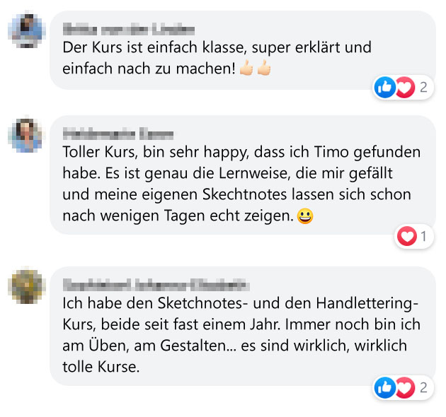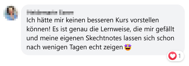 Nachfolgend findest du einige Rezensionen von Kurs Teilnehmern die bereits erfolgreich in die Welt der Sketchnotes eingetaucht sind und ihre kreativen Fähigkeiten entdeckt haben.