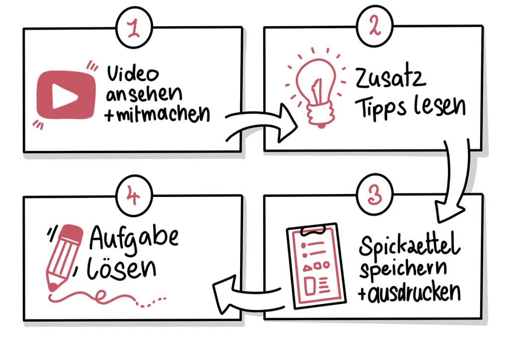 - Die analogen Spickzettel als PDF, die dich zukünftig an das Gelernte erinnern werden