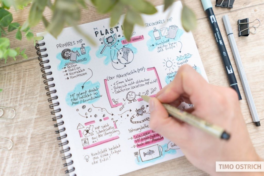 Druckst du dir alle Spickzettel aus, entsteht somit mit jeder Lektion ein richtiges Sketchnotes-Heft, das dich noch lange begleiteten kann. Am besten heftest du die einzelnen Seiten in eine Mappe oder sammelst sie in einem Klemmbrett..
