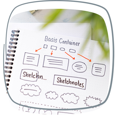Effektive Container (5 Lektionen)Dieses große Modul nutzt Container in unterschiedlichen Ausprägungen um deine Sketchnotes zu bereichern. Auch Banner, Flaggen und Sprechblasen sind dabei.