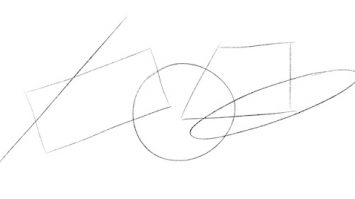 Alle Zeichnungen bestehen aus Grundformen wie Linien, Quadraten, Dreiecken, Kreisen oder Ovalen. Hier werden in mehreren Aufwärmübungen zunächst einfache Formen geübt. Anschließend wird in den Praxisübungen gezeigt, wie man nahezu jedes Bild auf Basis von Grundformen zeichnen kann.